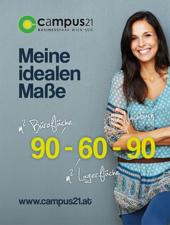 Campus21, der Business Park Wien Süd bei Brunn am Gebirge, sollte als idealer Unternehmensstandort kommuniziert werden – bestens erreichbar, ausreichend Parkplätze, flexible Flächen und ein tolles